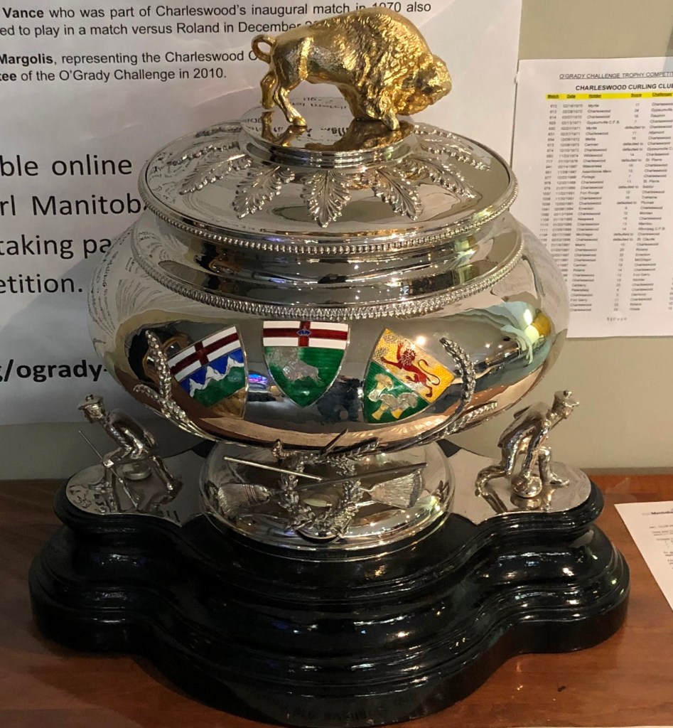 Going back to 1908, In 1908 Colonel J.W. deCourcy O’Grady, who was President of the Manitoba Curling Association, presented the trophy to encourage good will and promote curling matches between affiliated clubs in the Association, which at that time included clubs from North Western Ontario and parts of Saskatchewan.