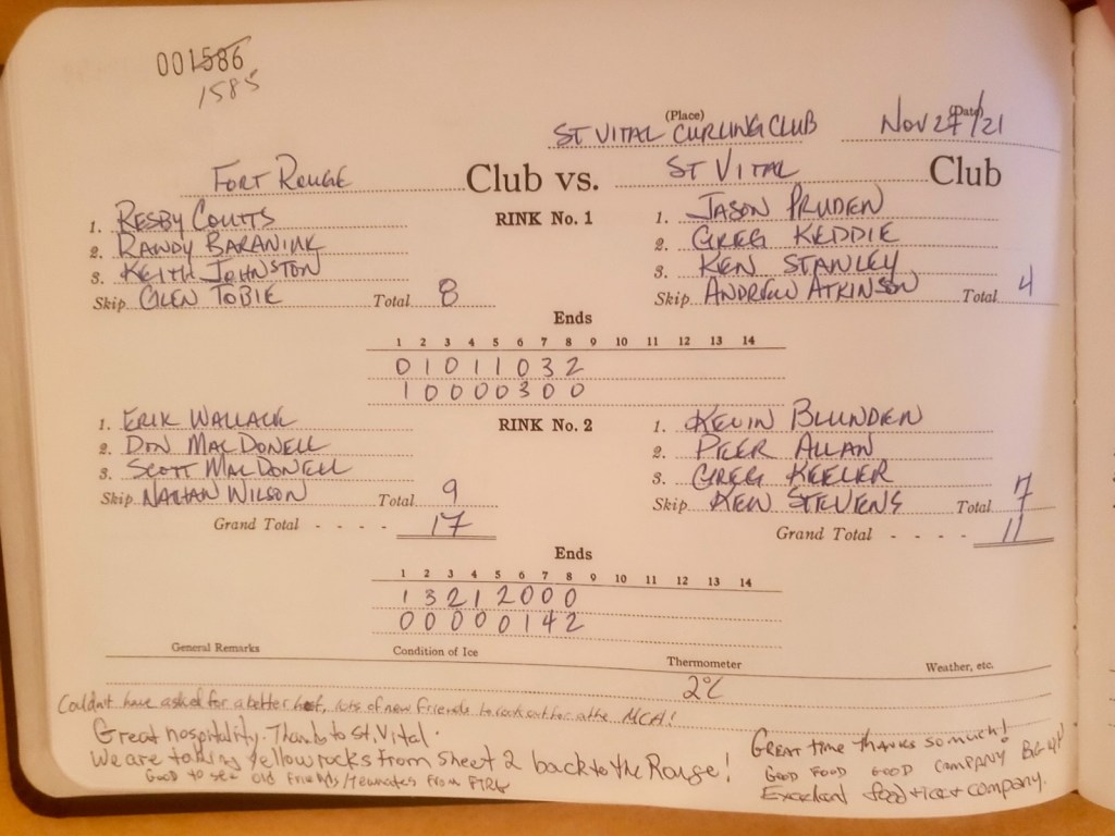 It should be noted, however, that there is an ’official game sheet” that goes in the record book. Such a game sheet exists for all 1,500+ games in the series going right back to the beginning. You can find those records and more HERE on the CurlManitoba website.