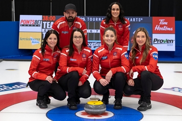 (Sunday, 10PM, February 6) Kerri Einarson, Val Sweeting, Shannon Birchard and Brianne Meilleur won a pair of playoff games Sunday in Thunder Bay to win the Scotties Tournament of Heart. It is the third consecutive national championship for the Einarson team from Gimli – a record held by Jennifer Jones and Vera Pezer and surpassed only by Colleen Jones and her four consecutive.