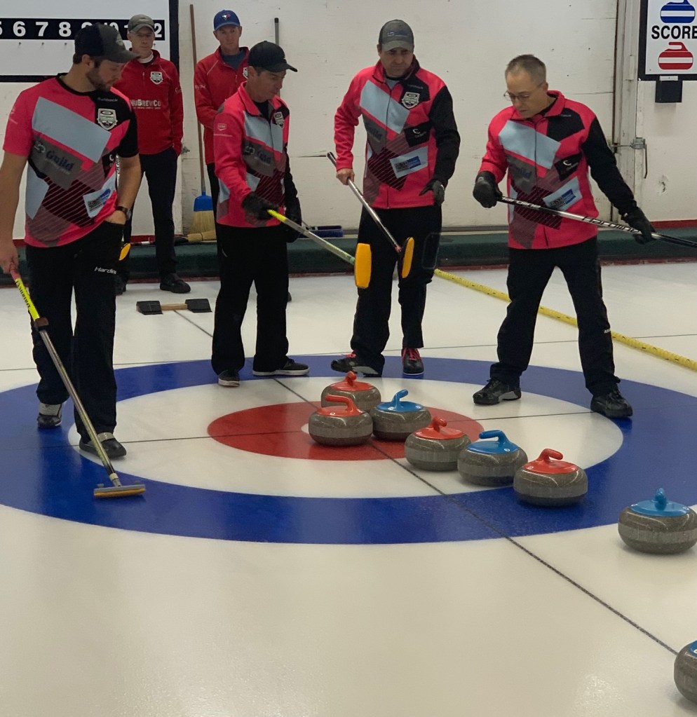 With a string of stones in play up the centre line, and three biting the button, Marnoch played the last stones of the fifth end as if he had two counters. When Stewart’s team was unable to move them, the measuring stick came out and Marnoch was proven correct.