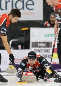 Top seed Matt Dunstone (Fort Rouge), #5 seed Braden Calvert (Fort Rouge), and Steve Irwin (Brandon) all qualified through the “A” Side of the 32-team preliminary round with three wins. They won their fourth games of the event on the evening draw Friday.