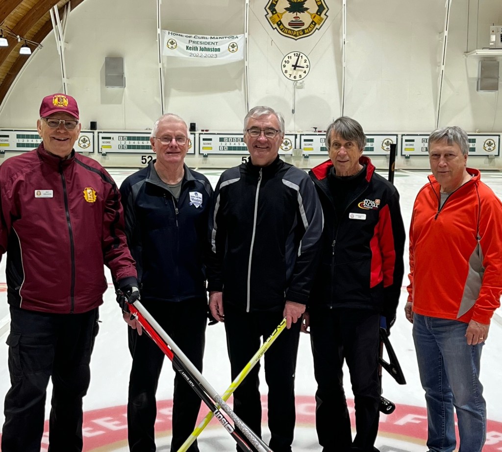 Warren Johnson & Dan McDonald, representing Winnipeg’s St. Vital Curling Club and Nancy Sheppard & Caroline Watt from the Brighton & District Curling Club in Ontario are the 2024 gold medalists in the National 2-person Stick Championships. The event wrapped up Sunday, April 21, at Toronto’s Leaside Curling Club.
