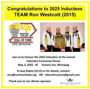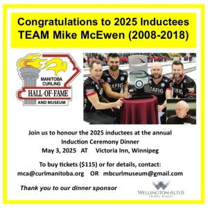 The formal induction ceremony will take place at Winnipeg’s Victoria Inn on Saturday, May 3, 2025. Those interested in attending, to support a specific inductee OR to celebrate the end of another great curling season and some of the greats in the game, are invited to contact the committee at mbcurlmuseum@gmail.com.