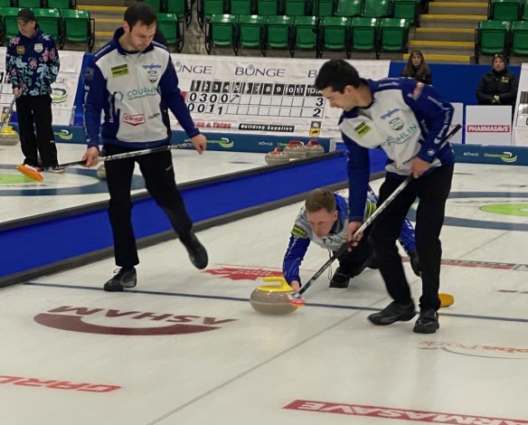 Top-seeded Reid Carruthers (BJ Neufeld, Catlin Schneider, Connor Njegovan, Alternate Kyle Doering, Coach Rob Meakin) advanced with an extra end win over Andrew Wickman (Fort Rouge) and a last stone four-foot draw win over Jace Freeman (Virden).