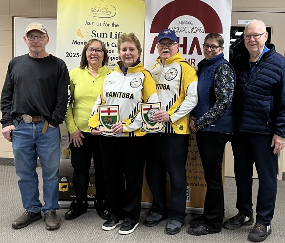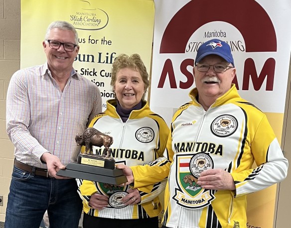 A 4 wins – 1 loss round robin record and three consecutive playoff wins over Canadian Open Stick champions has earned Bill & Judy Kitching (Stonewall) the championship in the Manitoba Stick Curling Association’s inaugural Sun Life Mixed Championship presented by Jim Anton.
