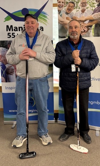In the other 2-person Stick divisions, the Men 70+ group was won by Blair Coggans & Lino Santos (Warren & Winnipeg) with an extra end win over the Fort Rouge Magnusson/Coutts duo and the Men U70 was won by the Steinbach team of Al Meyers & Curt Brandt with a win over Jim Partaker & Denis Leduc (St. Claude), also in an extra end.