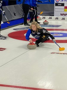It was a bold first end attempt by Kate Cameron – playing an outside-in attempt to bump her own rock and roll on for a pair. The shot over-curled and stopped in the rings for a single point but it set the tone. A deuce on the 3rd end and two more on the 7th gave the Cameron foursome a 7-4 win and their second win of the day.
