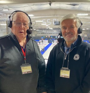 I have been in the broadcast booth since my first experiences doing radio broadcasts of Mel Logan’s 1982 Brier in Brandon and Brian Fowler’s 1987 Brier in Edmonton (alongside Ron Arnst). Also a radio broadcast of the 1994 Thompson Tankard final between Dave Smith and Doug Armour (along side Bob Picken) and a lot of Shaw Cable work over several years with Bob Picken, Ralph Bagley and Cathy Gauthier. There is no better seat in the house for these two games today.